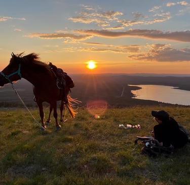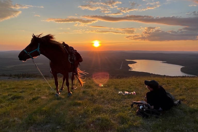 On a midnight sun horseback hike in the Pyhätunturi area