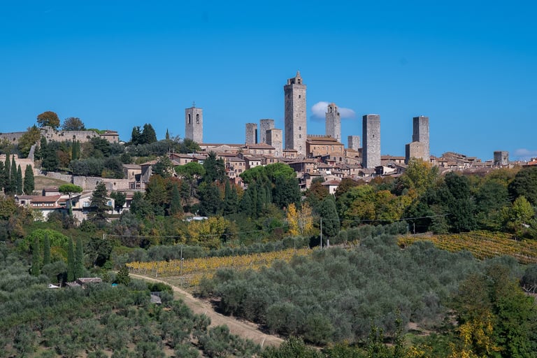 San Gimignano is a UNESCO World Heritage Historic Center well worth visiting. The town is famous for its medieval towers. In the Middle Ages, wealthy families built tall stone towers to show off their power.. Originally there were 72 towers — today 14 remain. They give the town a dramatic, fortress-like skyline you can’t find anywhere else in Italy.