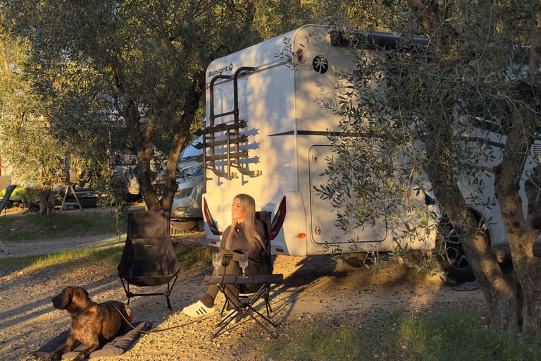 Asuntoautolla ajamisessa Toscanassa oli toinenkin suuri etu. Voit lähteä viikonlopuksi mihin tahansa suuntaan ja yöpyä siellä, jos haluat, ilman hotellien tai majapaikkojen ennakkovarauksia. Lisäksi jotkut viinitilat tarjoavat leiriytymismahdollisuutta viininmaistajaiskierroksiin osallistujille. Tämä onkin erinomainen tapa vierailla viinitiloilla - kuskikin voi osallistua viininmaistajaisiin kokonaisuudessaan, kun ei tarvitse enää ajaa samana päivänä kierroksen jälkeen.