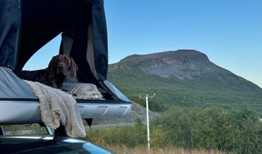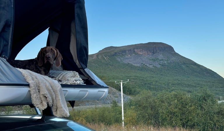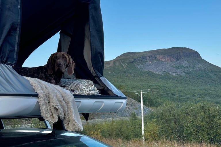 Automme kattoteltta osoittautui Naavan ehdottomaksi suosikiksi. Se hyppää kattotelttaretkillä iltaisin auton kylkeä vasten ja pyytää minua nostamaan sen ylös. Siellä se nukkuu tyytyväisenä ja rakastaa pötkötellä aamuisin rauhassa katsellen ympäristöä korkealta tähystyspaikaltaan. Koska Naava ei osaa kiivetä alas tikkaita takaperin, se oppi nopeasti kiipeämään olkapäälleni kun se haluaa tulla alas.