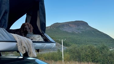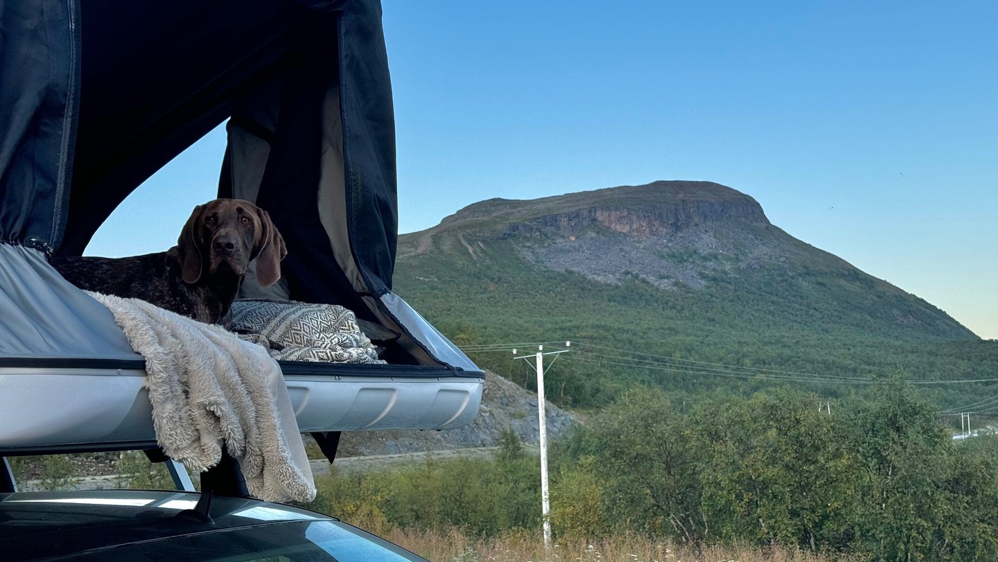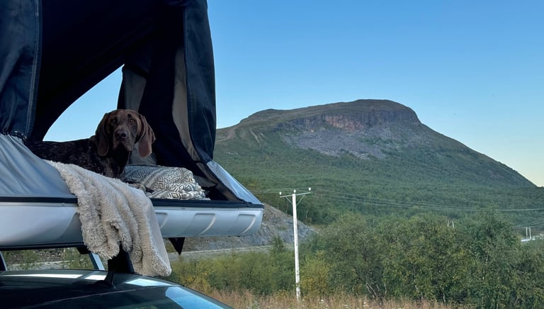Our rooftop tent on our car turned out to be an absolute favourite of hers. She jumps up against the car in the evenings, asking me to lift her up and loves to lay up there watching everything in the mornings. As she doesn't know how to climb down a ladder backwards, she quickly learned to climb on my shoulder when she wants to get down, although she's a bit heavy for Miia to do this.